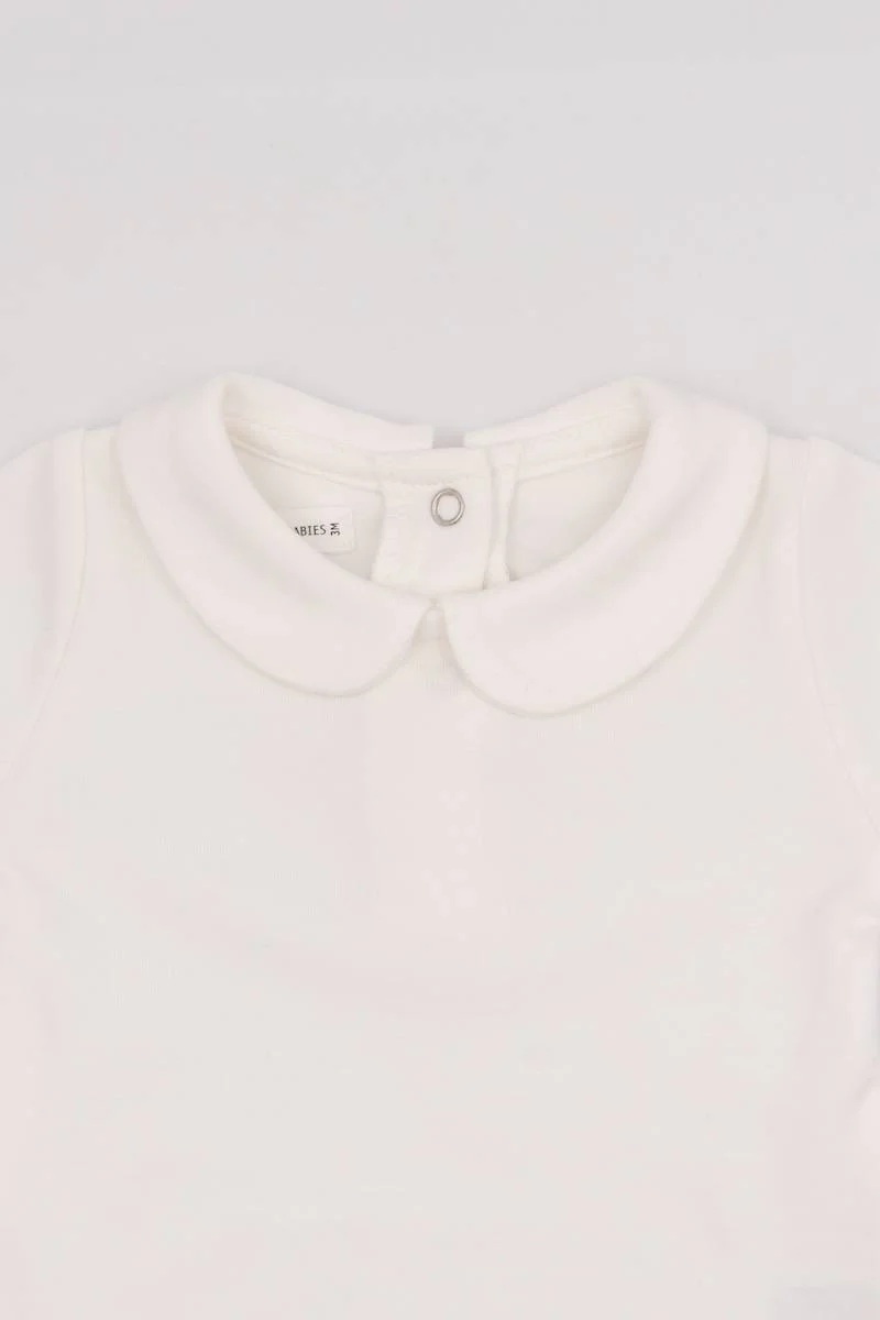 Боди за девојче во со кружна јака, изработено од меки и дишечки материјали кои се нежни на чувствителна кожа и обезбедуваат удобност цел ден. Практично за секојдневно носење со лесно закопчување, ова боди комбинира едноставен, елегантен изглед со максимална удобност за вашето бебе.