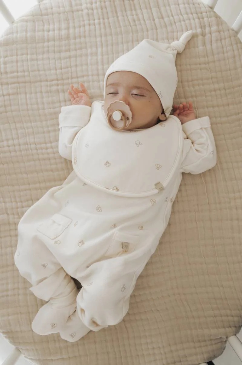 Мека бебешка капичка со јазол во pure olives (маслинесто зелена) боја, изработена од бамбус вискоза и органски памук — природни, дишечки и нежни материјали кои се пријатни за чувствителната кожа на новороденчето. Капичката е удобна, практична и стилски додаток што ја штити главата на бебето и го комплетира секојдневниот изглед.