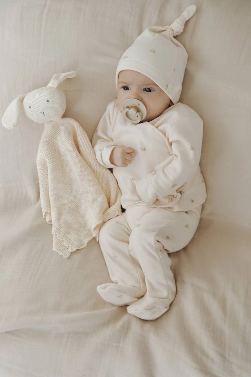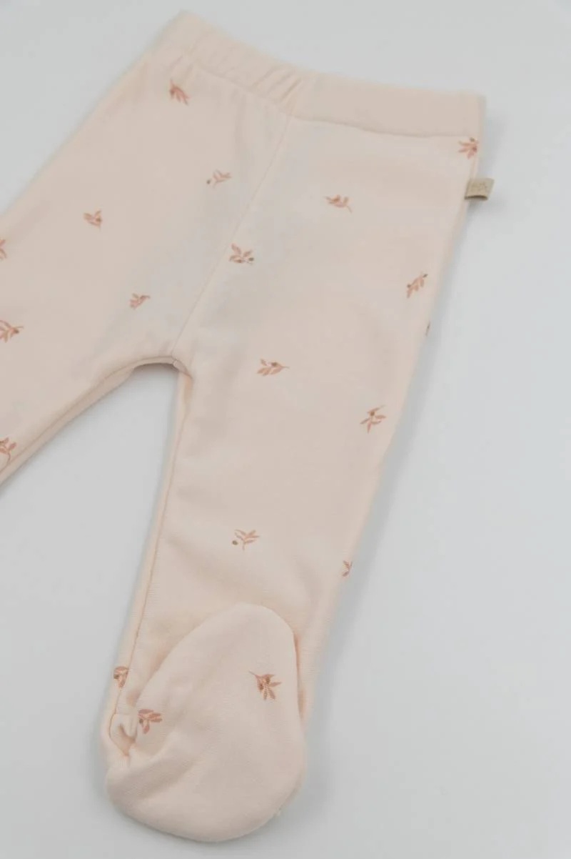 Бебешки панталончии со затворени ногавици изработени од бамбус вискоза и органски памук, материјали што се мек, дишечки и нежни за чувствителната кожа на бебето. Овие панталончии со вградени ножни делови се удобни, практични и идеални за секојдневно носење, обезбедувајќи природна удобност и топлина при игра и спиење.