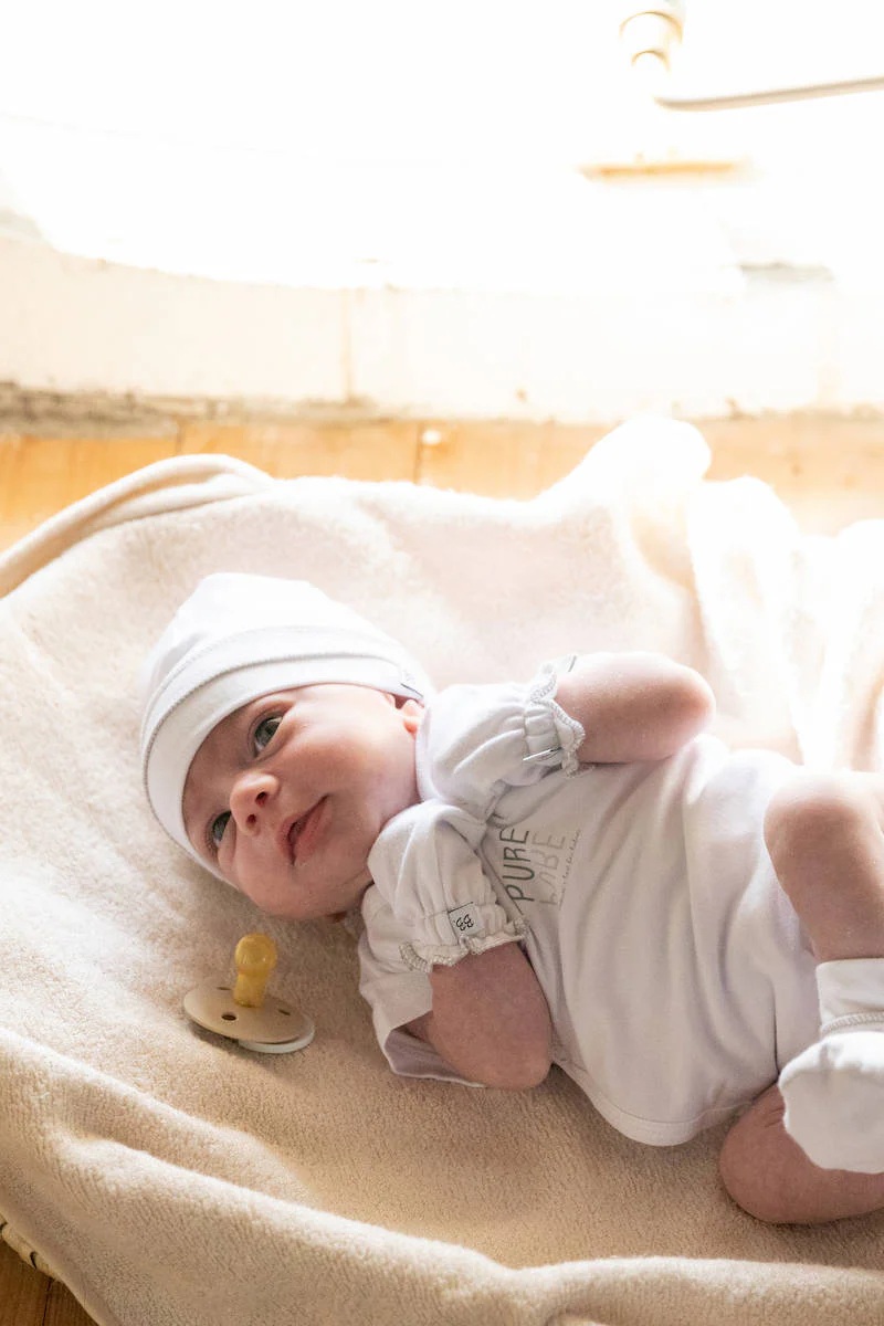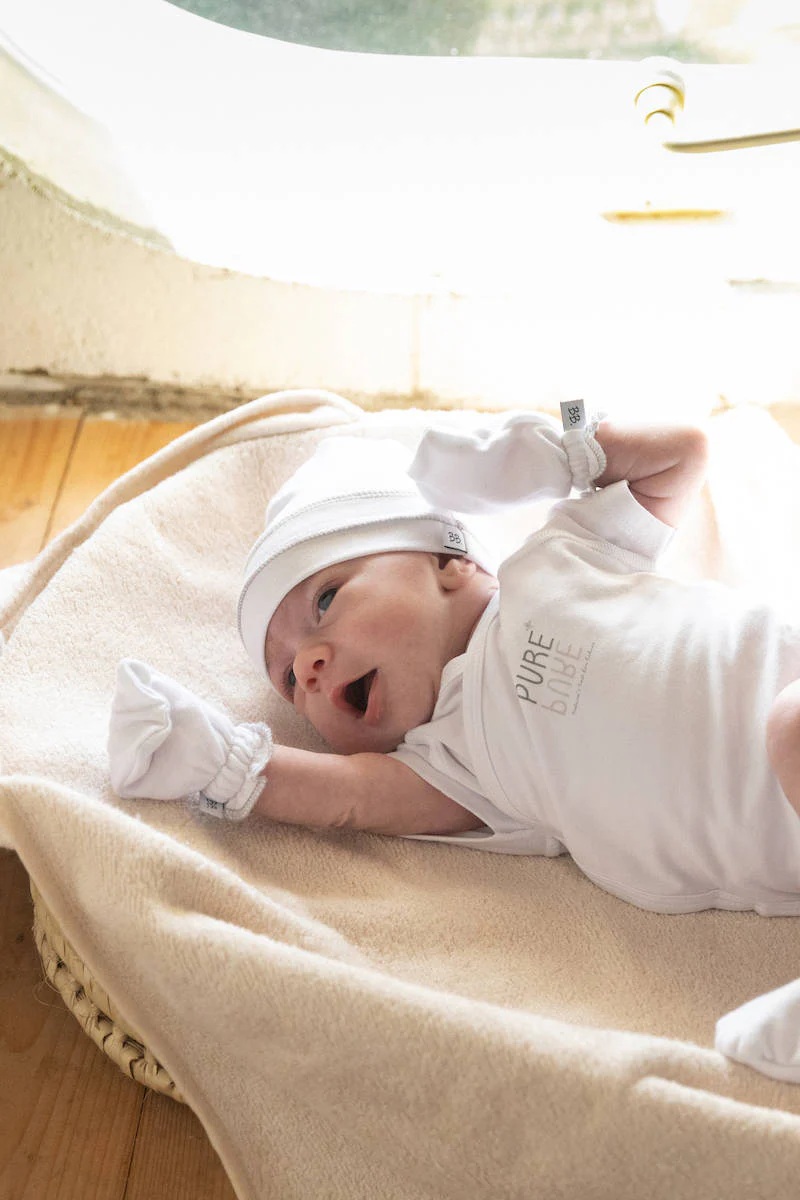 Сет за новороденче што вклучува мека капичка и чорапчиња, изработени од бамбус вискоза и органски памук – материјали кои се дишечки, нежни и пријатни за чувствителната кожа на бебето. Овој сет е идеален за секојдневно носење или како стилски подарок, обезбедувајќи удобност, мекост и природна грижа уште од првите денови на живот.