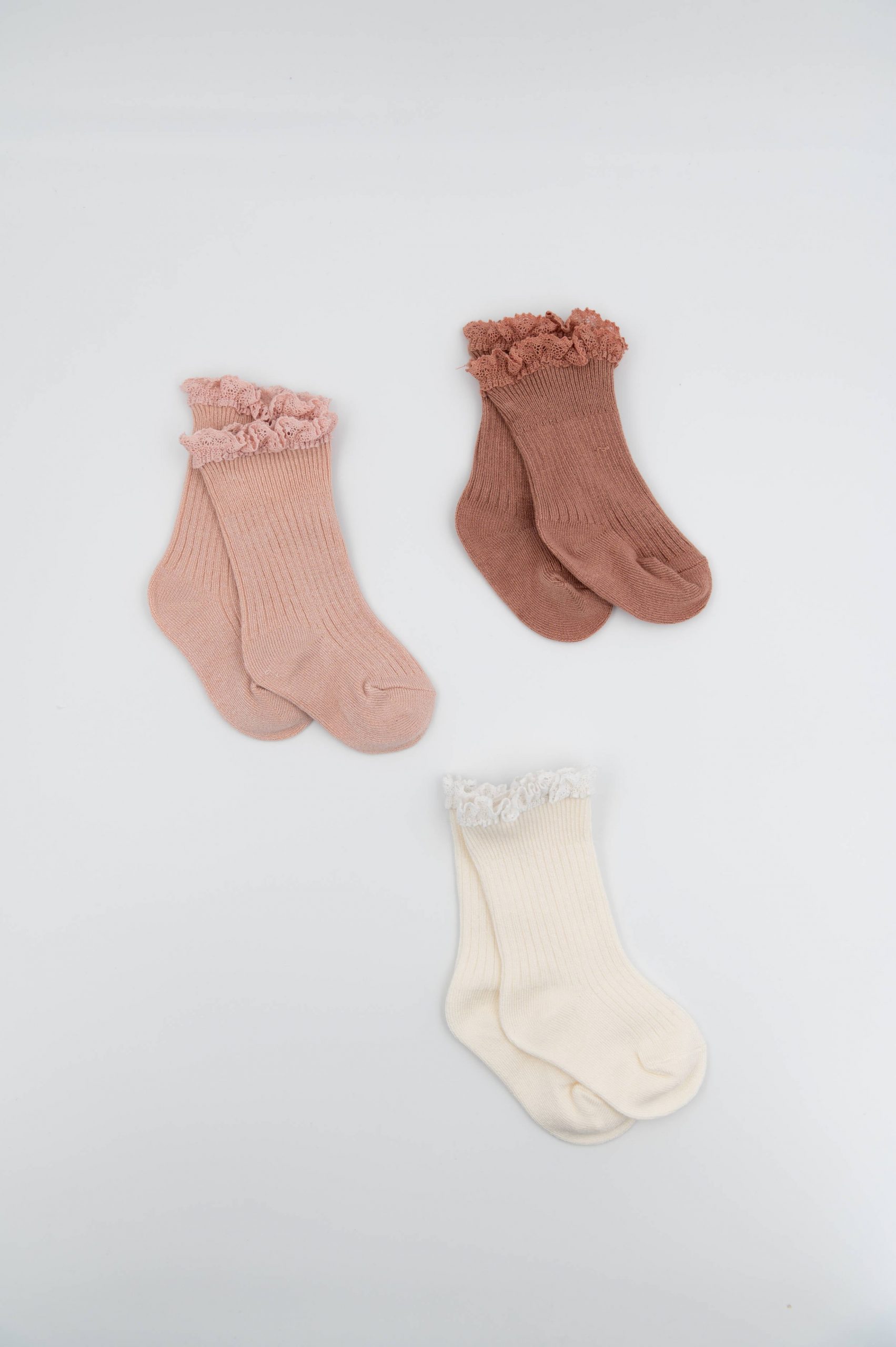 Сет од 3 пара чорапи со чипка, спакувани во убава кутија за подарок. Изработени од органско бамбус влакно, исклучително меки, дишечки и погодни за чувствителна кожа. Елегантниот раб со чипка ги прави идеални за свечени и секојдневни комбинации.  Материјал: 98% бамбус вискоза, 2% еластин.