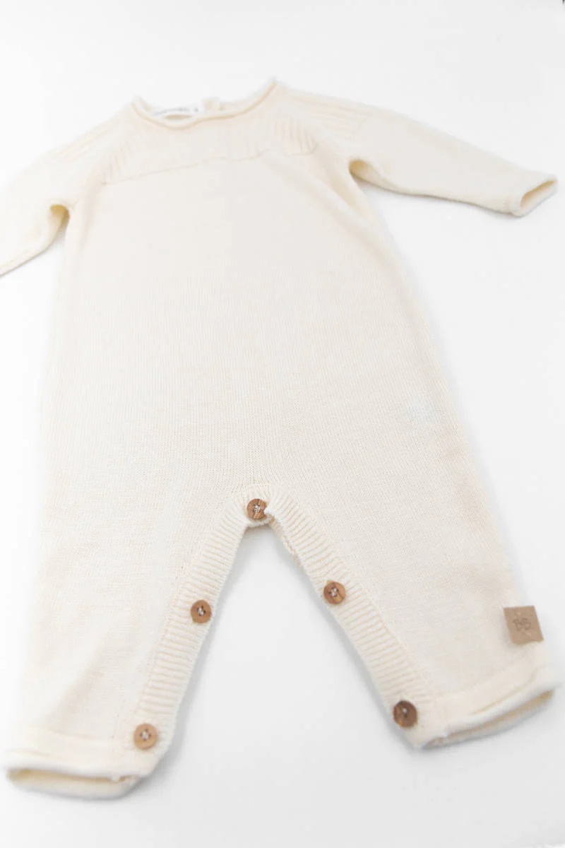Едноделен бебешки костим „Tutina“, изработен од бамбус вискоза и органски памук, мек и дишечки за чувствителната кожа на вашето бебе. Има практично отворање на грбот за лесно облекување и пресоблекување, комбинирајќи удобност, природни материјали и стилски изглед за секојдневни активности или посебни пригоди.