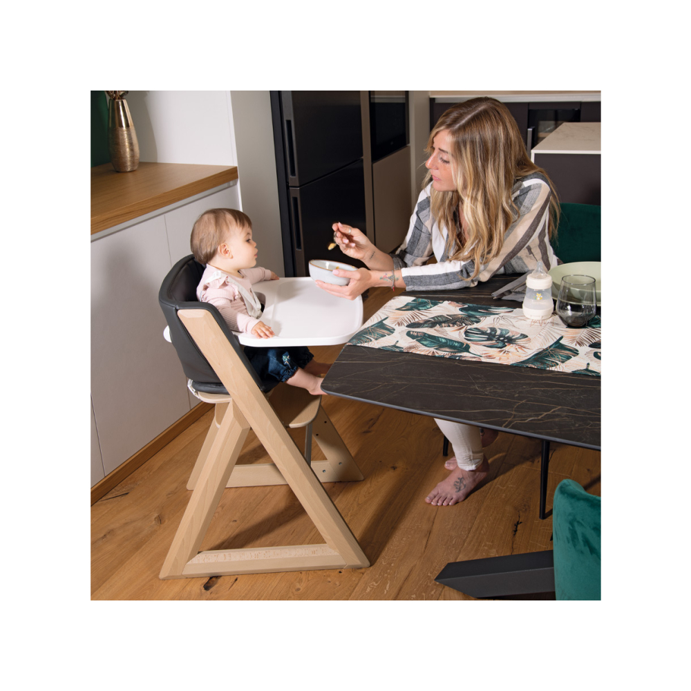 Столчето е изработено од масивно буково дрво и е наменета за долготрајна употреба – од раѓање па сè до возрасна возраст. Максималната носивост е до 110 kg. Димензиите се приближно 80 cm висина, 47 cm ширина и 59 cm должина, а тежината на производот е околу 7,2 kg, што обезбедува одлична стабилност без да биде тешка за поместување.