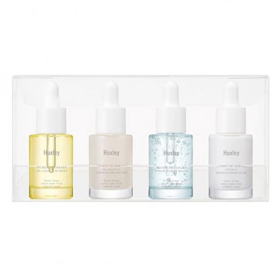 Четирите најпродавани серуми на Huxley во еден мини сет. Наменети за хидратација, навлажнување, смирување и заштитува на кожата.