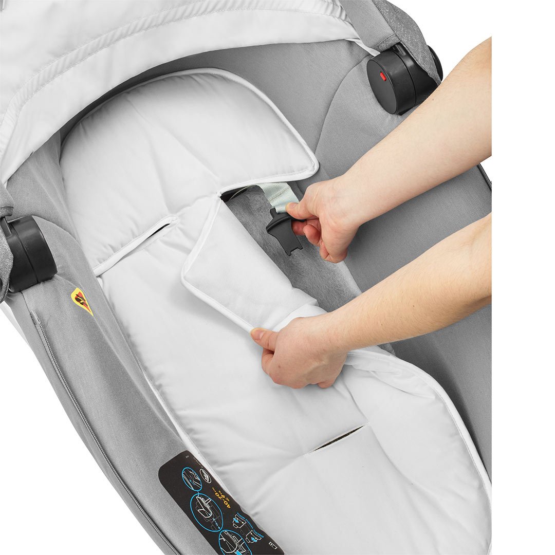 Експертите советуваат и препорачуваат дека лежечката позиција за малите бебиња е најдобра за спиење. Круцијално за правилниот раст на вашето дете и развојот на мозокот е кога тие можат да се движат слободно, истегнуваат и вежбаат со нивните раце и нозе. Со Maxi Cosi-Jade ова сега е целосно овозможено при возење со количка, но и при долгите патувања во автомобил.